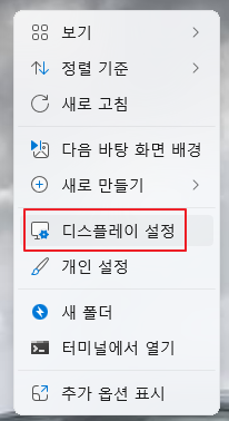 바탕화면 우클릭 → ‘디스플레이 설정’ 진입